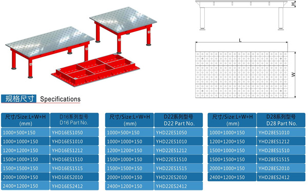 工裝平臺的選用需根據產品的大小,形狀而定,鈑金類及小型鋼結構件多采用D16系列的平臺;