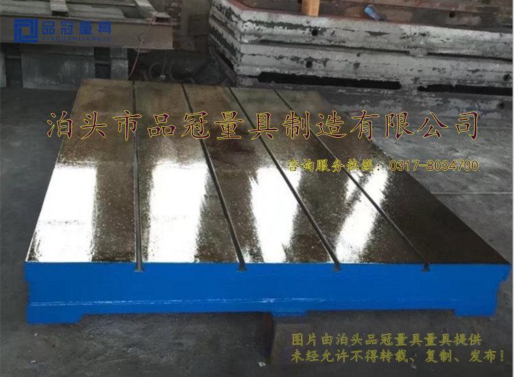 河北焊接平臺、泊頭焊接平臺材質采用高強度鑄鐵HT200-300,硬度為:HB170-220、HT-200材質配料時原料含量加配料按含碳量:3.1-3.4 錳:0.6-0.9 硅:1.5-2.0標準。焊接平板經過兩次人工處理(人工退火600度-700度和自然時效2-3年)使用該產品的精度穩定,耐磨性能好用來進行工件的焊 接工藝,和鉚焊平板不同,上面沒有孔,工作面為平面或T型槽。