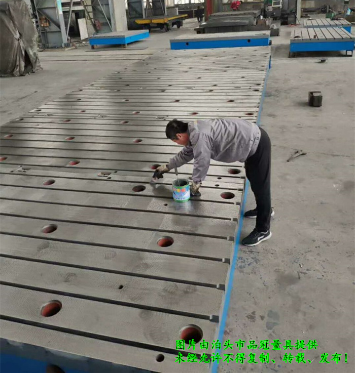 大型裝配平臺主要應(yīng)用于動(dòng)力機(jī)械設(shè)備的裝配和調(diào)試的鑄鐵工作臺,在裝配平臺正面加工有T形槽,可以固定動(dòng)力機(jī)械設(shè)備,裝配平臺工作面上根據(jù)要求可加工圓孔、U型孔或長孔。